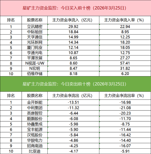 从个股主力资金监控数据来看,主力资金净流入前十的个股所属板块较为分散,立讯精密净流入居首。