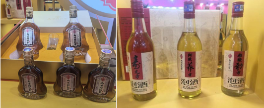 南京同仁堂露酒产品(图片来源:财联社记者摄)南京同仁堂也在此次展会上推出多款中药药酒新品,其中包括一款阿胶类露酒;尚美健康集团则带来了当归、灵芝、黄芪三鞭酒等多款主打传统滋补的露酒产品。