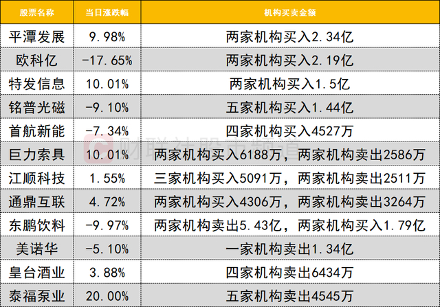 今日龙虎榜机构活跃度有所提升,福建本地股反复活跃,平潭发展走出5天3板,获两家机构买入2.34亿,同时深股通买入2.58亿。特发信息获两家机构买入1.5亿。
