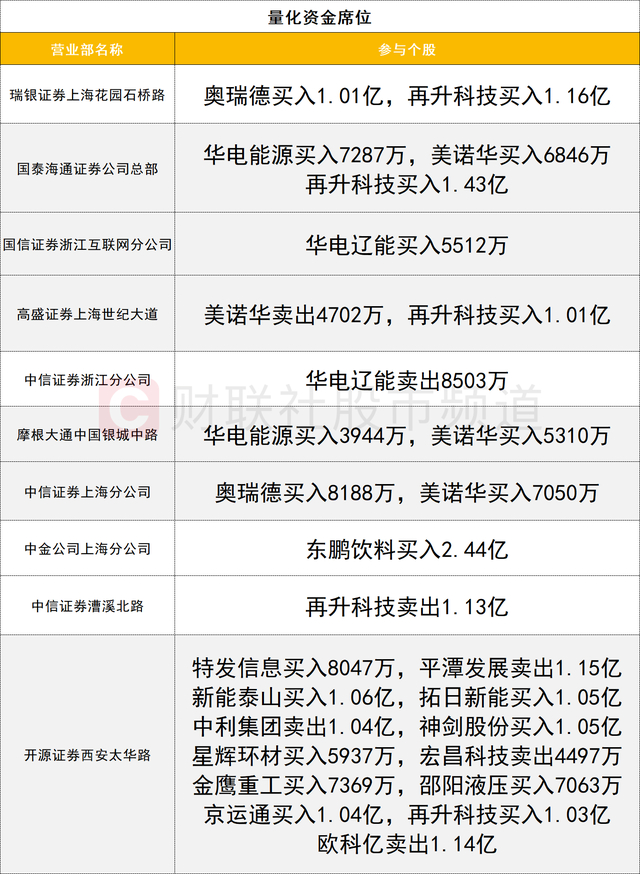 量化资金活跃度较高,平潭发展遭一家量化资金(开源证券西安太华路)卖出1.15亿。光纤概念获量化资金关注,其中特发信息获一家量化资金(开源证券西安太华路)买入0.8亿;同时新能泰山获该席位买入1.06亿。