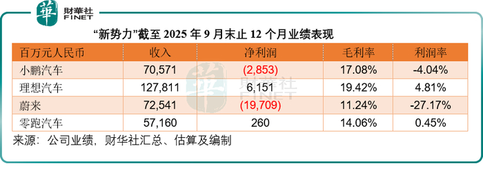新势力阵营已从规模竞赛步入盈利淘汰赛,交付量增速、毛利率改善与财务健康度成为股价核心驱动力,即便业绩尚未追上传统车企,市场仍给予其显著的估值溢价。