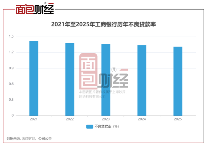 同时,工商银行2025年末资产总额达到53.48万亿元,同比增长9.5%;客户贷款及垫款总额升至30.51万亿元;不良贷款率进一步下降至1.31%,拨备覆盖率则达到213.6%。