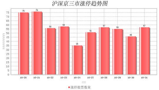 今日沪深京三市一共57支股票涨停,较上一个交易的46支增加11支。