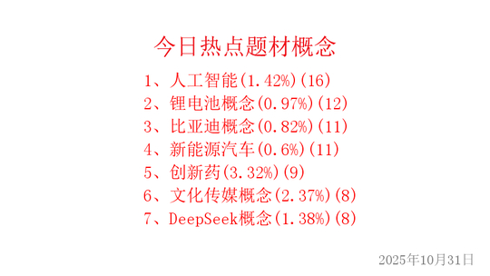 做主线,抓龙头!今天是2025年10月31日,我们来复盘和梳理今日的热点题材概念主线。