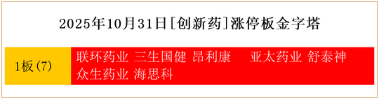 一共有7支个股涨停。其中,联环药业、三生国健、昂利康、亚太药业、舒泰神、众生药业、海思科1板。