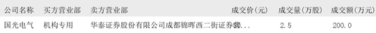 国光电气今日机构专用买入席位为1席,成交量共2.50万股,成交额共200.00万元,成交额占流通市值比例为248.05%。
