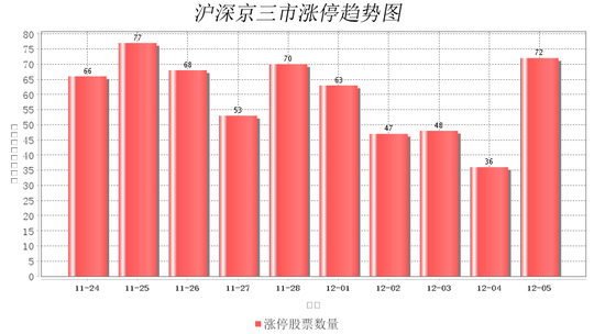 今日沪深京三市一共72支股票涨停,较上一个交易的36支增加36支。