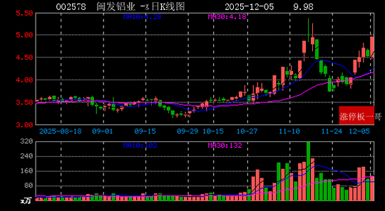 5、闽发铝业(002578)(9.98%)