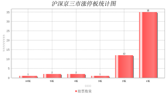 10板共1支,5板共2支,4板共2支,3板共1支,2板共12支,1板共35支,市场当前最高板为10连板!
