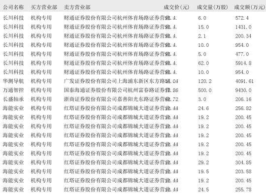 今日大宗交易榜单中出现机构买入席位的个股为:巨人网络、兴业科技、新兴装备、若羽臣、华仁药业、朗科智能、数字认证、英飞特、江龙船艇、飞荣达、长川科技、华测导航、万通智控、长盛轴承、海能实业、挖金客、盟固利、达利凯普、浙江荣泰、百傲化学、华依科技、拓荆科技、埃夫特。