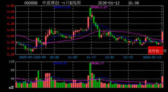 4、中嘉博创(000889)(10.06%)