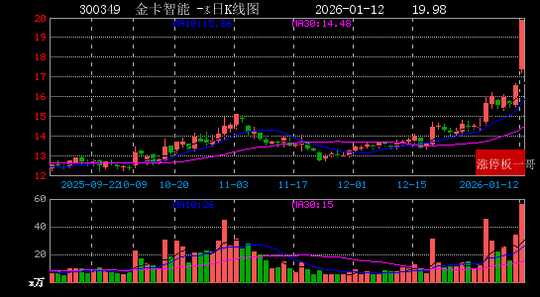 17、金卡智能(300349)(19.98%)