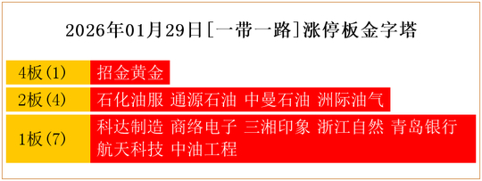 一共有12支个股涨停。其中,招金黄金4板;石化油服、通源石油、中曼石油、洲际油气2板;科达制造、商络电子、三湘印象、浙江自然、青岛银行、航天科技、中油工程1板。