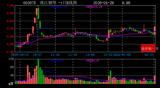 10、珠江钢琴(002678)(9.96%)