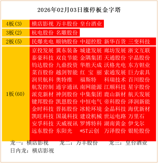 今天是2026年02月03日,我们来复盘一下今日的涨停板。