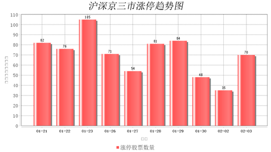 今日沪深京三市一共70支股票涨停,较上一个交易的35支增加35支。