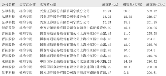 今日大宗交易榜单中出现机构买入席位的个股为:中公教育、红旗连锁、万里石、京能热力、庄园牧场、祖名股份、易事特、英诺激光、力量钻石、华润材料、广立微、艾布鲁、蓝箭电子、华阳智能、上海机场、弘讯科技、恒尚节能、晋拓股份、永臻股份、晨丰科技、数据港、威奥股份、龙芯中科、德科立、联芸科技、芯原股份、拉普拉斯。