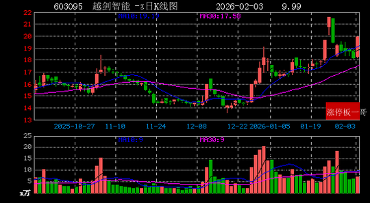 5、越剑智能(603095)(9.99%)