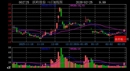 1、跃岭股份(002725)(9.99%)