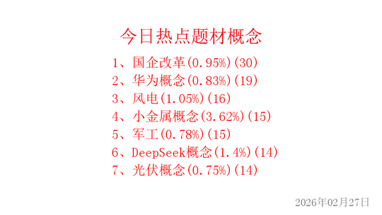 做主线,抓龙头!今天是2026年02月27日,我们来复盘和梳理今日的热点题材概念主线。