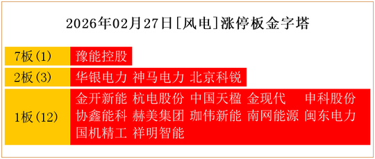 一共有16支个股涨停。其中,豫能控股7板;华银电力、神马电力、北京科锐2板;金开新能、杭电股份、中国天楹、金现代、申科股份、协鑫能科、赫美集团、珈伟新能、南网能源、闽东电力、国机精工、祥明智能1板。