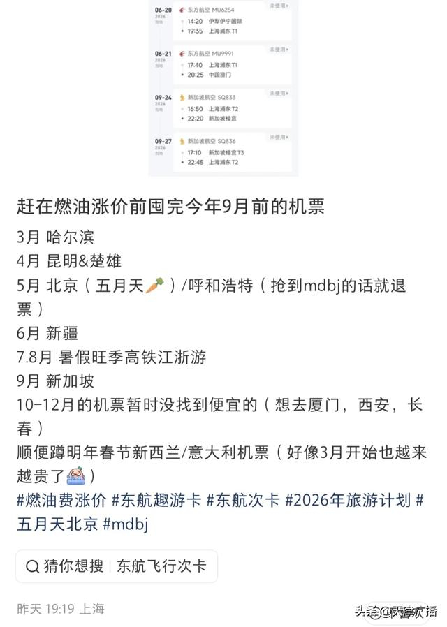 受中东局势持续影响,国际油价震荡,全球多家航司密集上调国际机票燃油费。3月25日,春秋航空率先发布通知,自2026年4月5日(含)零时起,按订单时间计算,上调国内航线燃油附加费,具体调整方案以后续通知为准。
