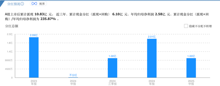 与之形成鲜明对比的是,丸美生物常年大手笔分红,A股上市后累计派现10.83亿元。公司实控人孙怀庆、王晓蒲夫妇则以超过80%的持股比例成为最大受益人,合计分得8.75亿元。而2022年至2024年,公司三年净利润之和为7.75亿元。