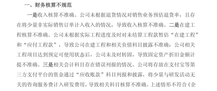 此次监管指出的问题虽不构成财务造假,但影响不容忽视。