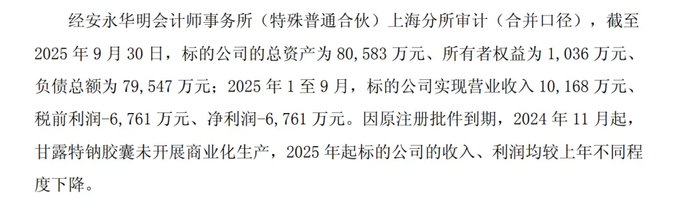 即便获得3.41亿元增资,但2024年末绿谷医药已资不抵债。截至2025年9月末,绿谷医药资产总额8.06亿元,负债总额7.95亿元,所有者权益为1036万元,资产负债率仍高达98.7%,已陷入严重的财务与经营困境。