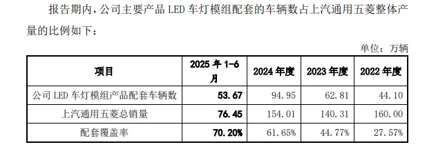 凭借长期积累的技术实力与稳定的供应保障能力,通宝光电的LED车灯模组在上汽通用五菱多款主力车型中的渗透率,已从2022年的27.57%快速提升至2025年上半年的70.20%,增长主要源于新车型量产及LED配置率的快速提升。