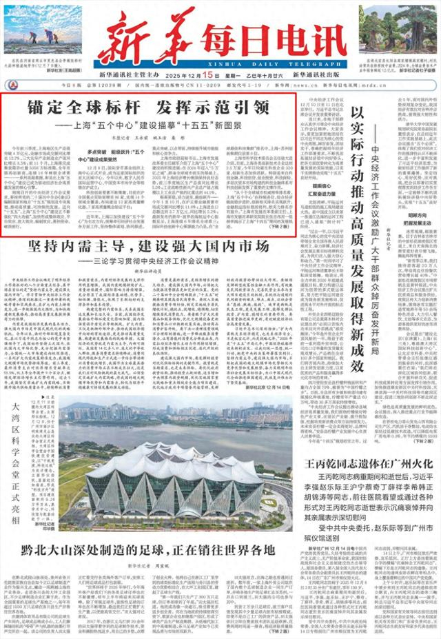 刚刚召开的中央经济工作会议要求,要按照党的二十届四中全会《建议》编制国家和地方“十五五”规划及专项规划,推动高质量、可持续的发展。迈向“十五五”,上海“五个中心”建设正不断强化“四大功能”,加快形成整体效应、平台效应、放大效应、辐射效应,勇担使命,破浪前行。