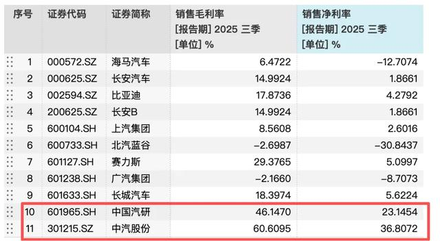 Wind数据显示,去年前三季度,中国汽研和中汽股份销售净利率分别为23.1%和36.8%。而根据乘联分会最新数据,2025年,汽车行业销售利润率4.1%,处于历史低位。