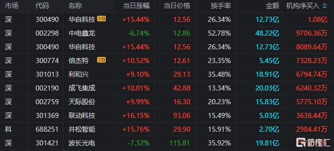 华自科技今日涨15.44%,换手率26.34%,成交额12.73亿。龙虎榜数据显示,机构净买入8089.64万元。