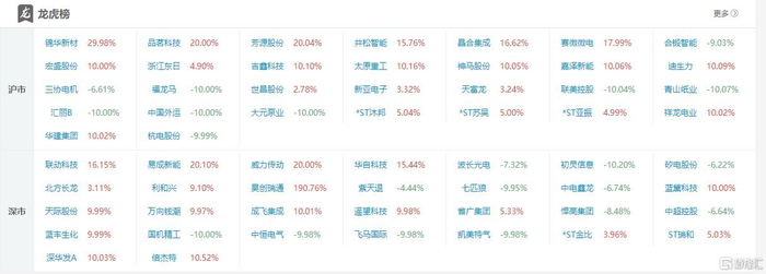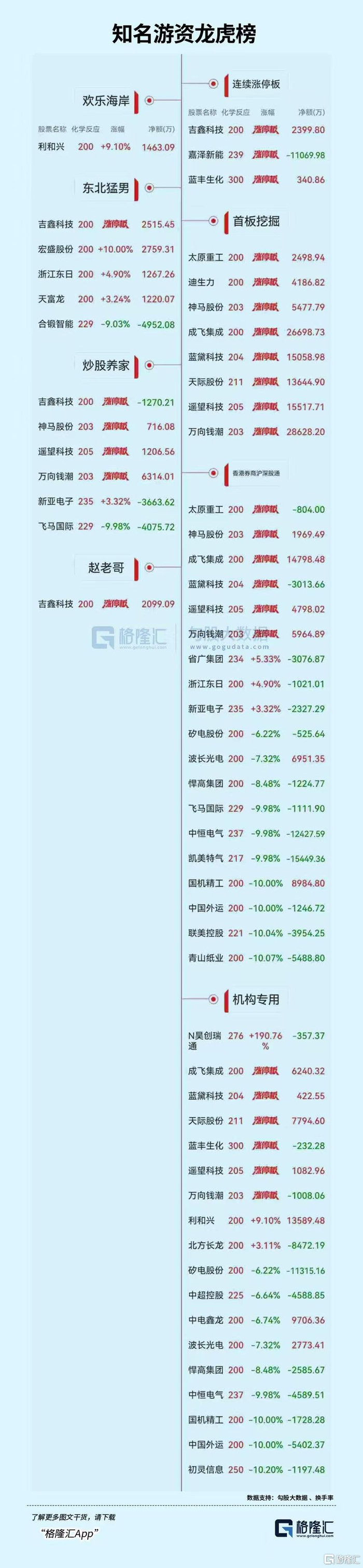 龙虎榜中涉及机构专用席位的个股中,当日净买入额前三为中电鑫龙、华自科技、利和兴,分别为9706.36万元、8089.64万元、6794.74万元。