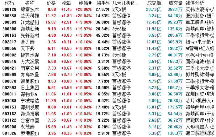焦点股方面,存储芯片板块盈新发展7连板、时空科技5连板,福建本地股延续强势,平潭发展8天6板、海峡创新20CM2连板,量子科技板块达华智能4连板。