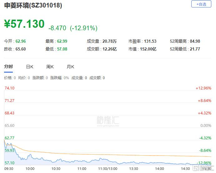 申菱环境大幅下跌12.91%,报57.13元创超2个月新低,总市值152亿元。