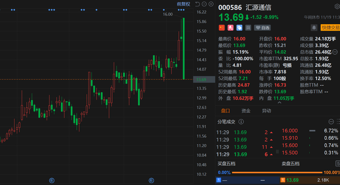 格隆汇11月19日|汇源通信(000586.SZ)今日复牌高开,开盘后直线转跌最终跌停,报13.69元,总市值25.5亿元。消息上,汇源通信公告筹划控制权变更事项进展,并发布定增预案,公司无控股股东、无实际控制人,若本次定增事项实施完成,公司控股股东将变更为鼎耘产业,实际控制人将变更为李红星。值得注意的是,为巩固控制权稳定性,鼎耘产业已承诺本次发行中所取得的股份自本次发行完成之日起36个月内不转让、出售或者以其他任何方式处置,且已与鼎耘科技签署《一致行动协议》,确保重大决策一致性。此外,公司发布未来三年股东回报规划,明确现金分红政策。