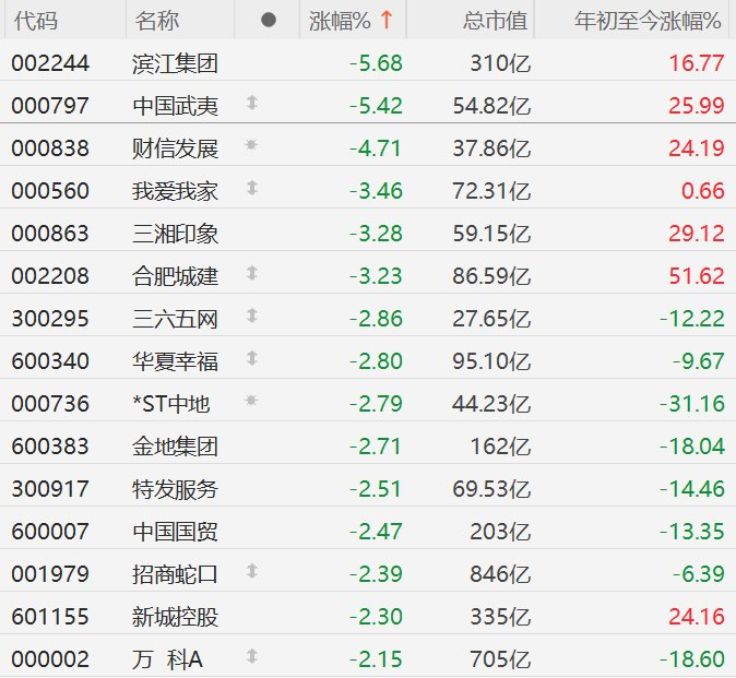 格隆汇11月26日|A股市场地产股下跌,其中,滨江集团、中国武夷跌超5%,财信发展跌近5%,我爱我家、三湘印象、合肥城建跌超3%,华夏幸福、金地集团、特发服务、中国国贸、招商蛇口、新城控股、万科A跌超2%。