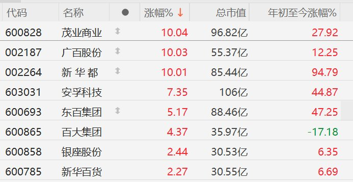 格隆汇11月27日|A股市场零售股走强,其中,茂业商业、广百股份、新华都10CM涨停,安孚科技涨超7%,东百集团涨超5%,百大集团涨超4%。消息面上,工业和信息化部等联合印发《关于增强消费品供需适配性进一步促进消费的实施方案》。提出到2027年,消费品供给结构明显优化,形成3个万亿级消费领域和10个千亿级消费热点,打造一批富有文化内涵、享誉全球的高品质消费品。