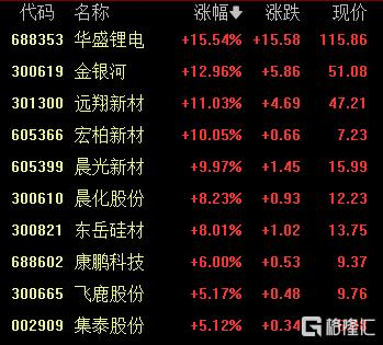 有机硅概念股走高,华盛锂电涨超15%,金银河涨超12%,远翔新材涨超11%,晨光新材10CM涨停,东岳硅材、康鹏科技等跟涨。