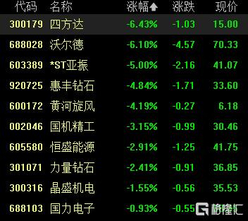 培育钻石概念跌幅居前,四方达、沃尔德跌超6%,惠丰钻石、黄河旋风跌超4%,国机精工、力量钻石等跟跌。