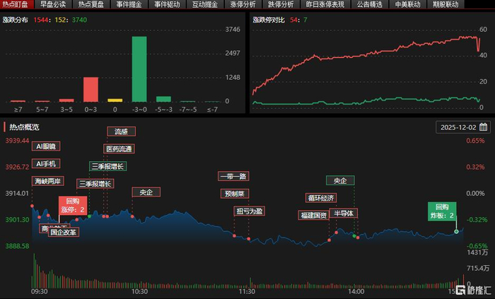 12月2日,A股三大指数集体下跌,全市场成交额1.61万亿元,较前一交易日缩量2822亿元。