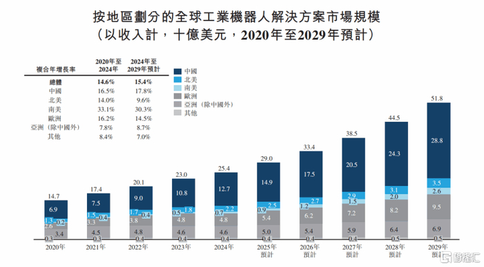 这一战略布局恰逢全球工业机器人行业的黄金增长期。当下,全球工业机器人解决方案市场正迎来爆发式增长,市场规模从2020年的147亿美元飙升至2024年的254亿美元,预计2029年将进一步突破518亿美元,2024-2029年复合年增长率高达15.4%。