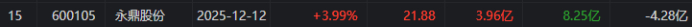 永鼎股份:今日上涨3.99%,全天换手率25.66%,成交额78.9亿元。机构净买入1.1亿元。