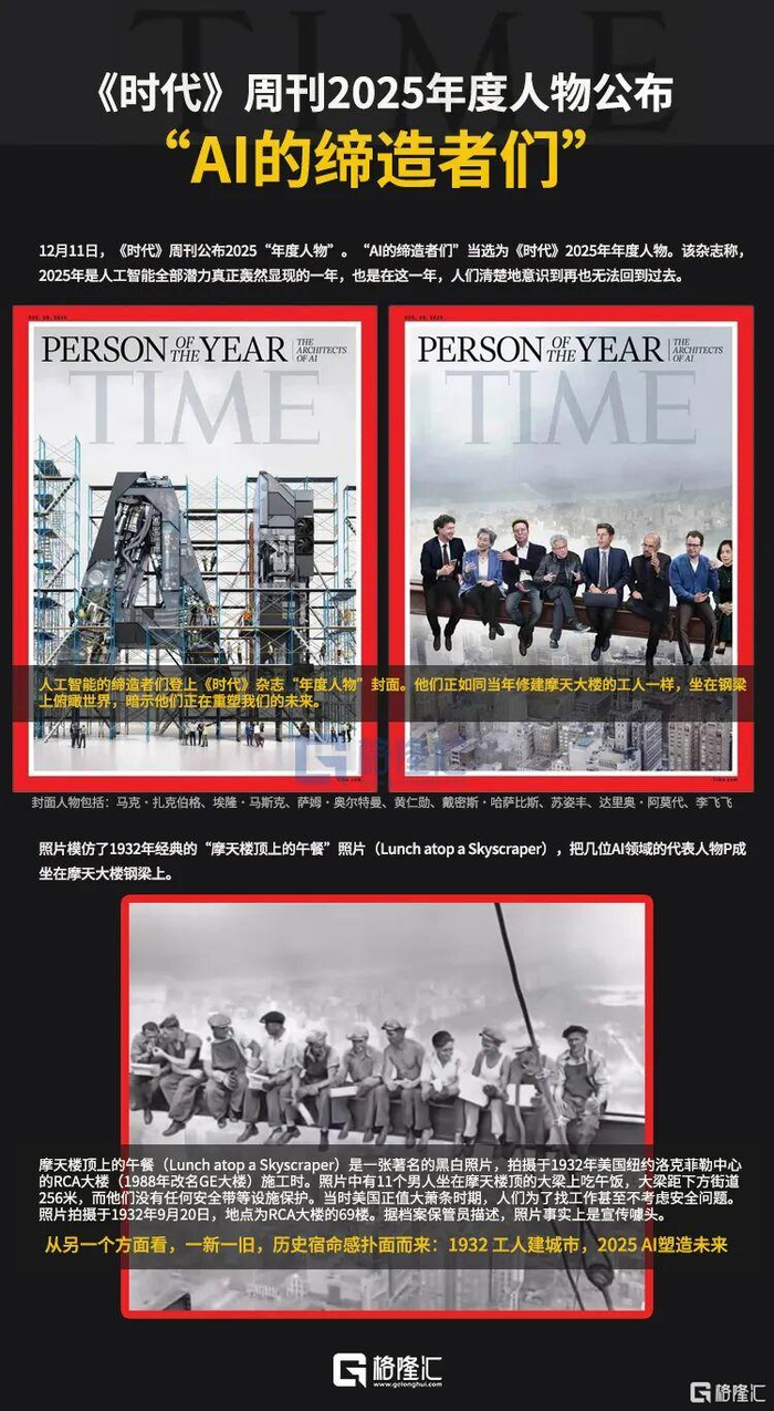 《时代》杂志将今年的年度人物给了“人工智能的缔造者”,并演绎了1932年的一张著名照片,将照片上的建筑工人替换为8位AI领域的领袖,引发巨大争议。