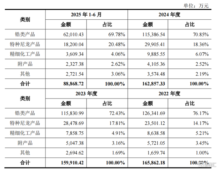 关键财务数据,来源:招股书长裕集团收入的主要来源为锆类产品及特种尼龙产品。