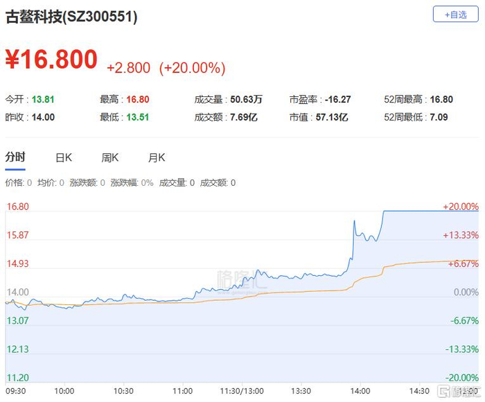 今日收报16.8元,涨跌幅20.00%,偏离值20.00%,换手率14.93%,成交额7.69亿。机构净买入5131.15万元。