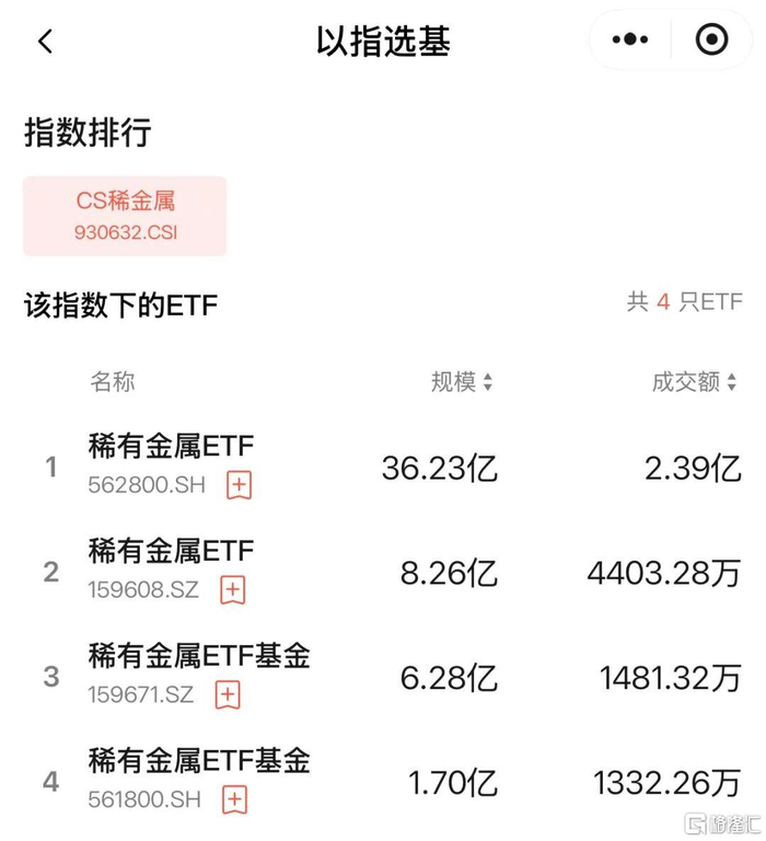 目前跟踪CS稀金属指数有四只ETF,其中嘉实基金旗下的稀有金属ETF(562800)规模、流动性双双位居前列,是同类唯一日均成交额破1亿元的ETF。