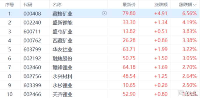 能源金属板块走强,藏格矿业涨逾6%,盛新锂能涨超4%,盛屯矿业、西藏矿业、华友钴业、融捷股份等多股跟涨。