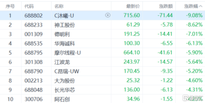 半导体板块下挫,神工股份跌超8%,德明利跌超7%,华海诚科、江波龙、大为股份、长光华芯等多股跟涨。